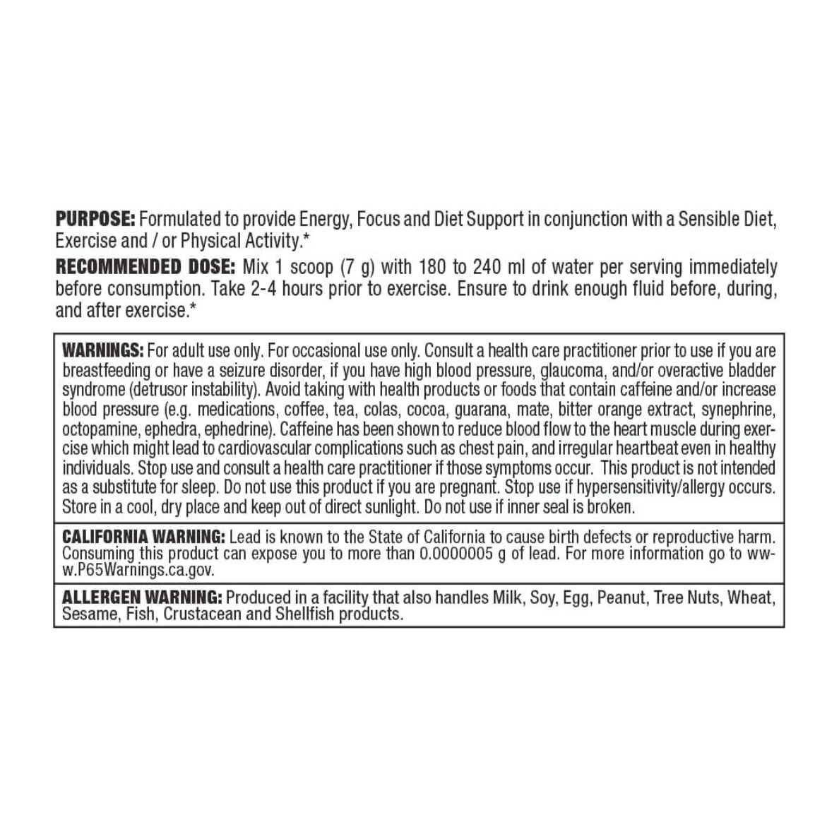آمینو کاتس دارای کافئین می باشد بنابراین موجب افزایش هوشیاری و افزایش تمرکز در حین تمرین می گردد.