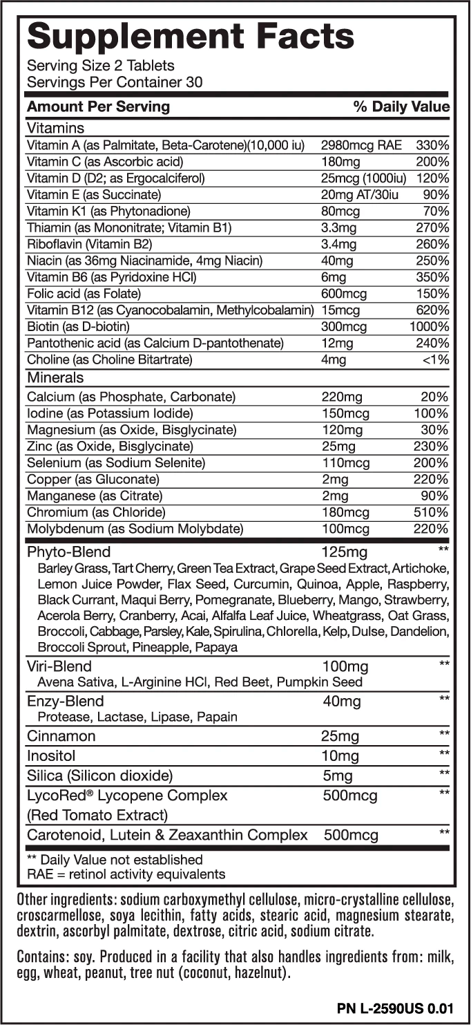 مولتی ویتامین موتانت 60 عددی MUTANT MULTI یک مکمل مولتی ویتامین عالی برای بدنسازان است که از بیش از 75 ریز مغذی و گیاه ساخته شده است. این محصول حاوی تمام مواد تشکیل دهنده ای است که برای پشتیبانی از حداکثر عملکرد انسان لازم است. ویتامین های با قدرت بالا، مواد معدنی از جمله الکترولیت ها، فیتونوترینت ها، عصاره های گیاهی، آنتی اکسیدان ها، آنزیم ها، انواع توت ها، سبزیجات و عوامل لیپوتروپیک در آن استفاده شده است. MUTANT MULTI مواد با کیفیت بالا را در فرم قرصهایی که به راحتی بلعیده میشوند ارائه میکند.