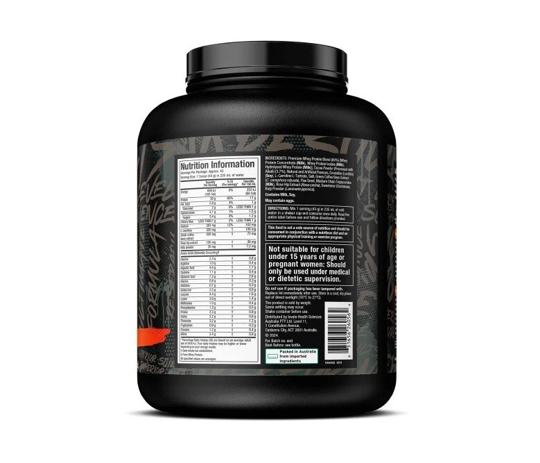 - پروتئین: ۳۰ گرم (از وی ایزوله، پپتیدها و هیدرولیز شده).