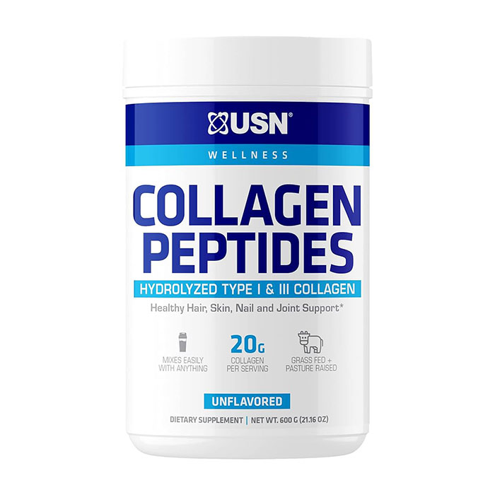 پپتیدهای کلاژن یو اس ان USN COLLAGEN PEPTIDES به شما کمک می کند که ظاهر و احساس عالی داشته باشید. کلاژن نوع I و III هیدرولیز شده ما بسیار در دسترس زیستی است و به سرعت هضم می شود. استفاده از آن بسیار آسان است و می توان آن را با قهوه، شیک یا اسموتی روزانه مورد علاقه خود مخلوط کرد. همچنین می توانید آن را به مخلوط پنکیک، ماست، بلغور جو دوسر، کوکی ها، کلوچه ها و موارد دیگر اضافه کنید.